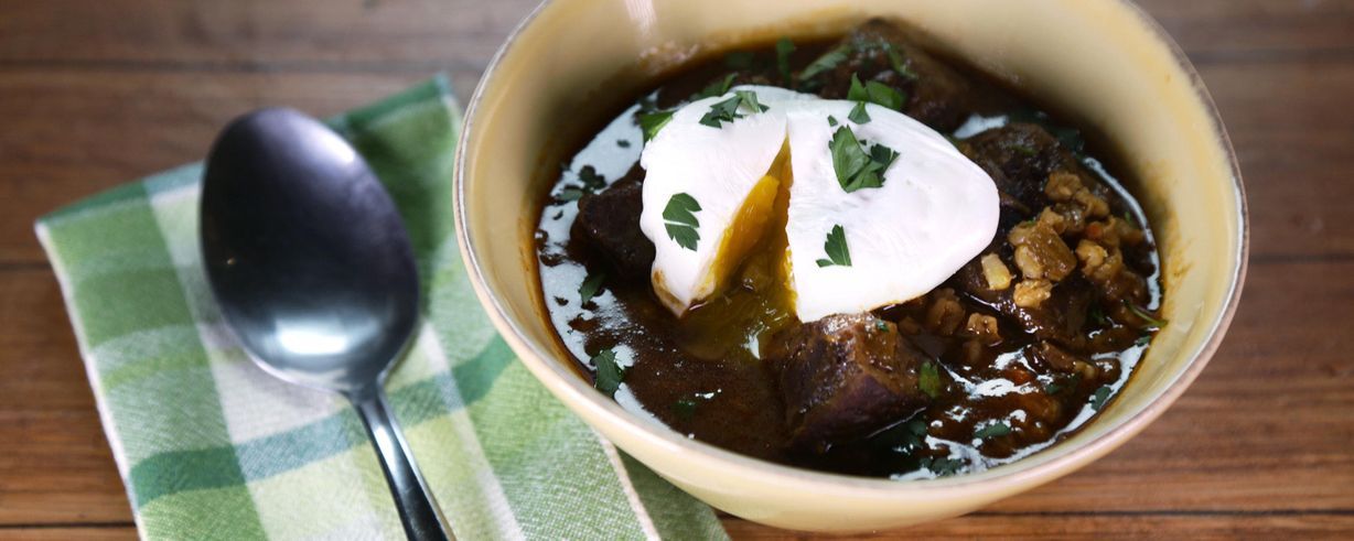 - 6 eggs poached in soup